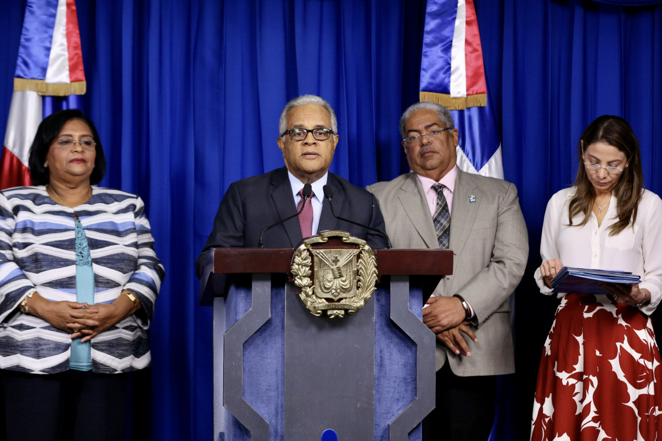 Rueda de prensa de funcionarios del Gobierno encabezados por el ministro de Salud Pública, Rafael Cárdenas Sánchez; además, de la representante de la OPS/OMS en el país, Alma Morales. Salón Orlando Martínez del Palacio Nacional.