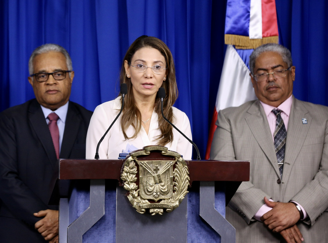Representante de la OPS/OMS en el país, Alma Morales, durante rueda de prensa en el Salón Orlando Martínez del Palacio Nacional.