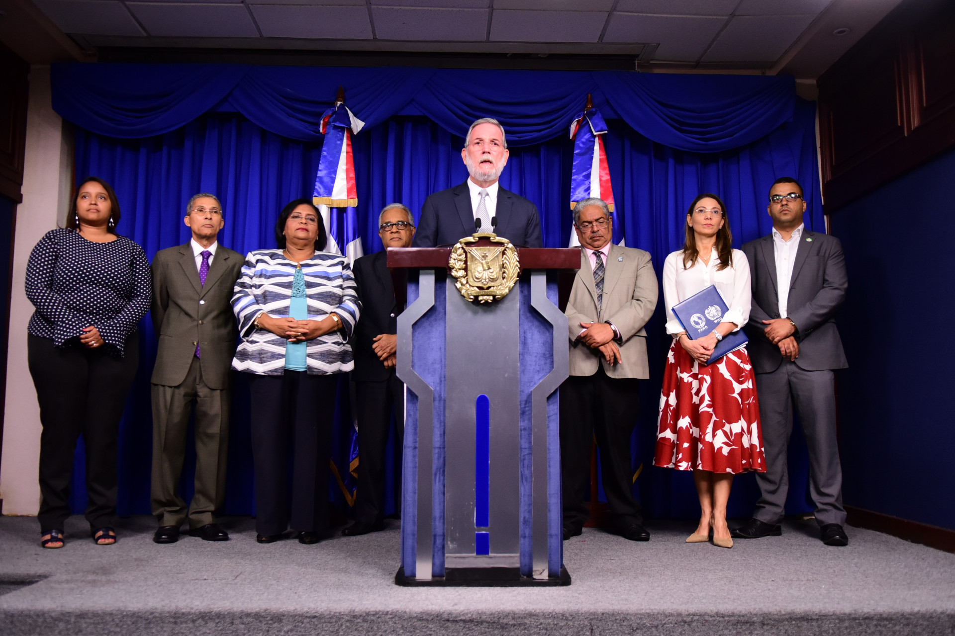 Rueda de prensa de funcionarios del Gobierno encabezados por el ministro de Salud Pública, Rafael Cárdenas Sánchez; además, de la representante de la OPS/OMS en el país, Alma Morales. Salón Orlando Martínez del Palacio Nacional.