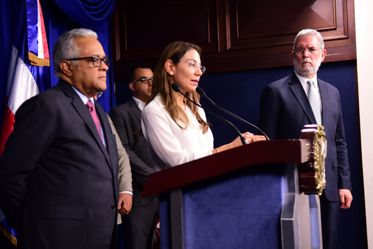 Rueda de prensa de funcionarios del Gobierno encabezados por el ministro de Salud Pública, Rafael Cárdenas Sánchez; además, de la representante de la OPS/OMS en el país, Alma Morales. Salón Orlando Martínez del Palacio Nacional.