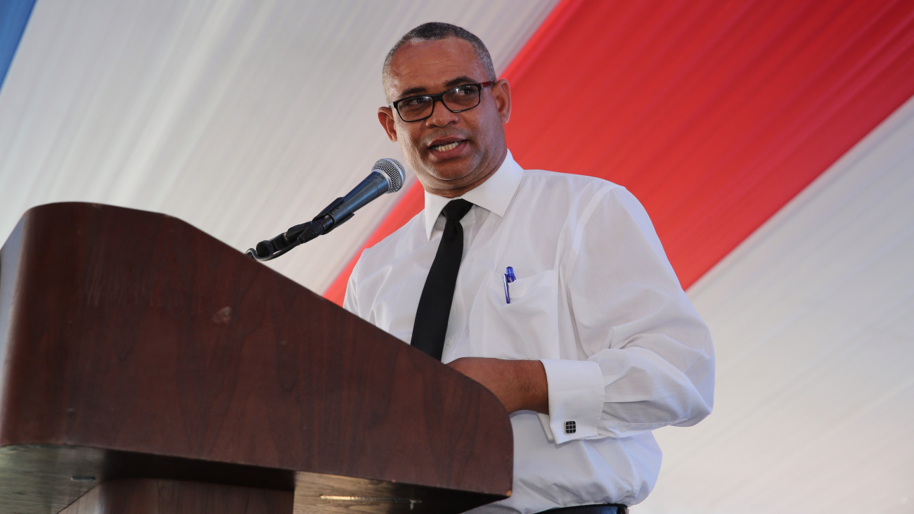 Participación de Leonel Recio, quien habló en nombre de la comunidad, manifestó su alegría y agradeció al presidente Danilo Medina por la entrega del Nuevo Boca de Cachón.