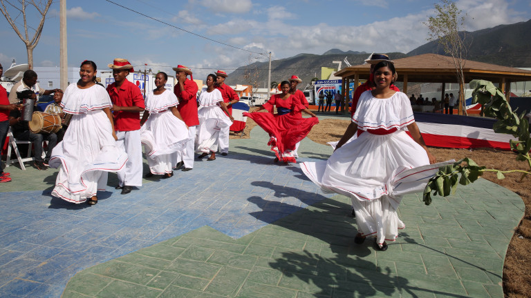 Integrantes de la agrupación del baile típico, presente durante la recepción inaugural encabezada por el presidente Danilo Medina, funcionarios y autoridades provinciales.