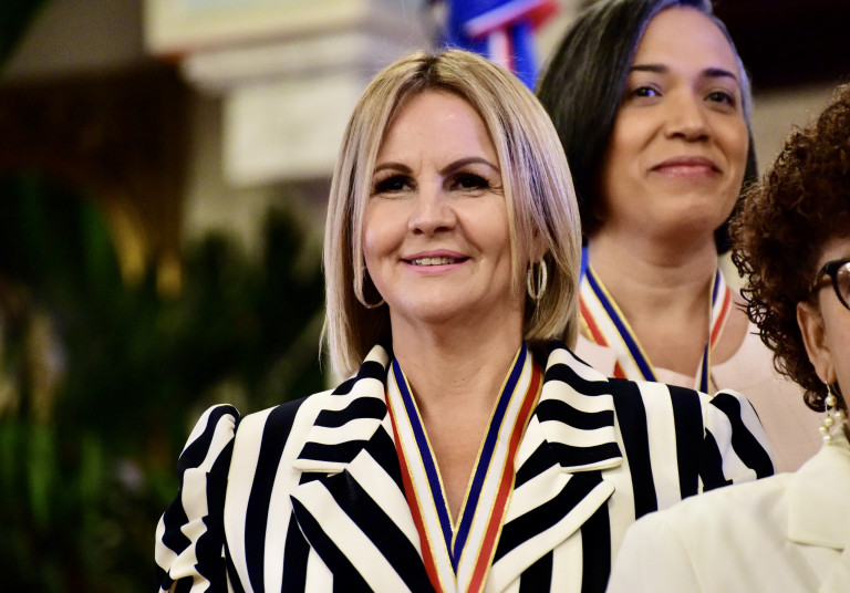 Gianni Paulino, galardonada con la Medalla al Mérito de la Mujer Dominicana en Filantropía.