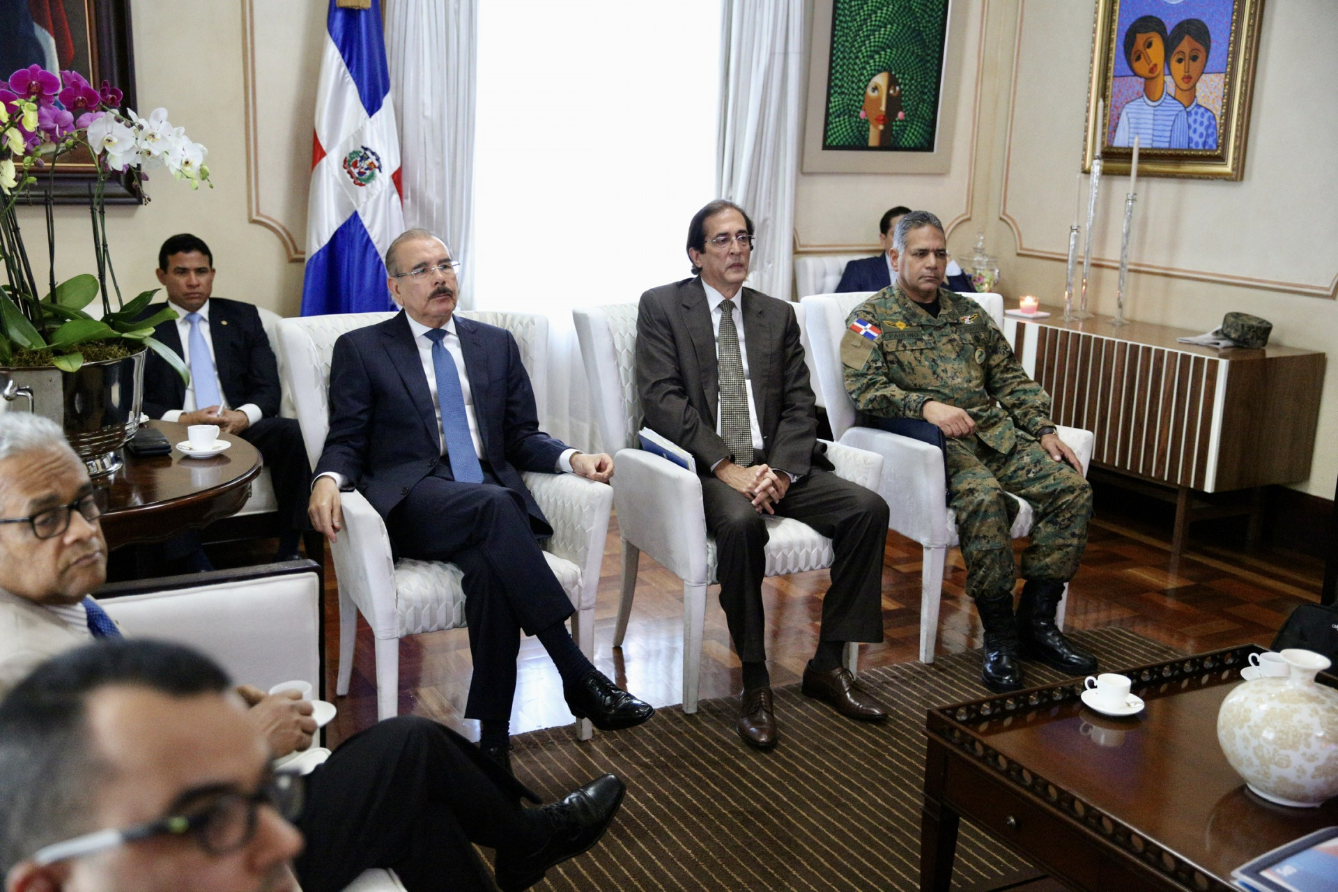Presidente Danilo Medina con funcionarios del Gobierno, encabezados por el ministro de Salud Pública, Rafael Sánchez Cárdenas; además de la representante de la OPS/OMS en el país, Alma Morales, durante reunión en el Salón Privado del Palacio Nacional.