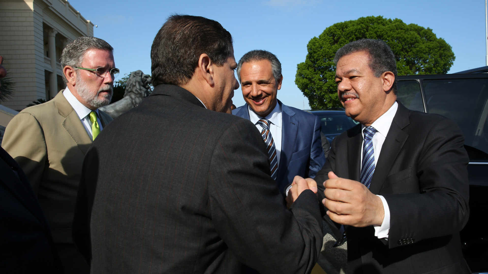 La llegada del expresidente Fernández al Palacio Nacional se produjo a las 4:55 de la tarde y fue recibido en las escalinatas frontales por el ministro Administrativo de la Presidencia, José Ramón Peralta; el portavoz del Gobierno y director general de Comunicación, Roberto Rodríguez Marchena y el asistente personal del presidente Medina, Carlos Pared Pérez.