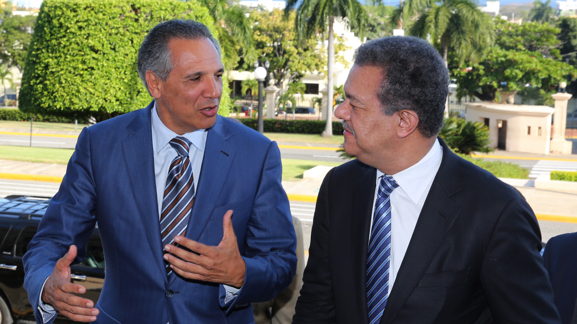 El expresidente Leonel Fernández cuando es conducido al despacho del Presidente Danilo Medina, en compañía del ministro Administrativo de la Presidente, José Ramón Peralta.