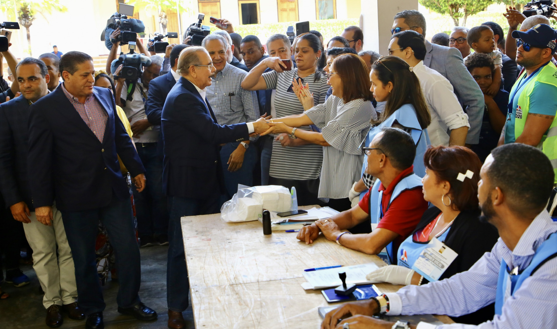 Presidente Danilo Medina a su llegada a la mesa electoral que le corresponde, ubicada en la Casa Provincial Hijas de María Auxiliadora del sector Don Bosco, Distrito Nacional.