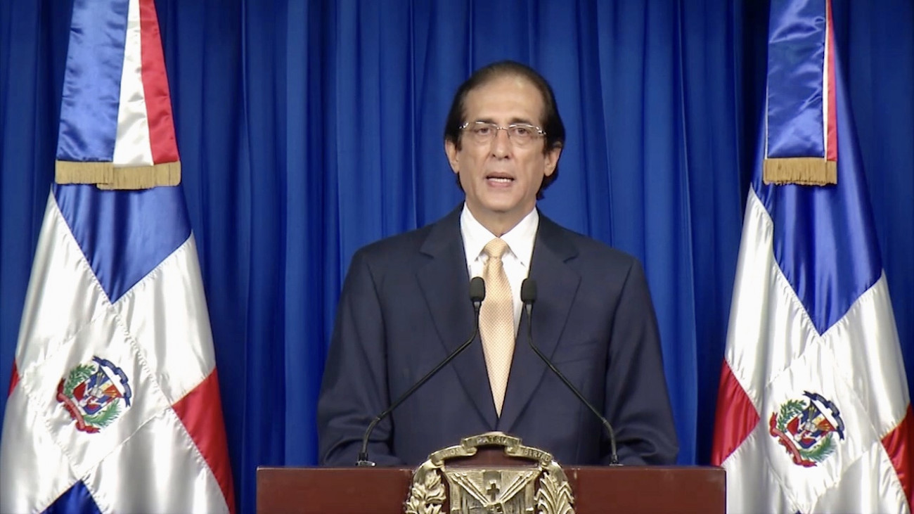 Ministro de la Presidencia, Gustavo Montalvo, en calidad de presidente de la Comisión de Alto Nivel para la prevención y el control del Coronavirus (COVIV-19), durante rueda de prensa en el Salón Orlando Martínez del Palacio Nacional.