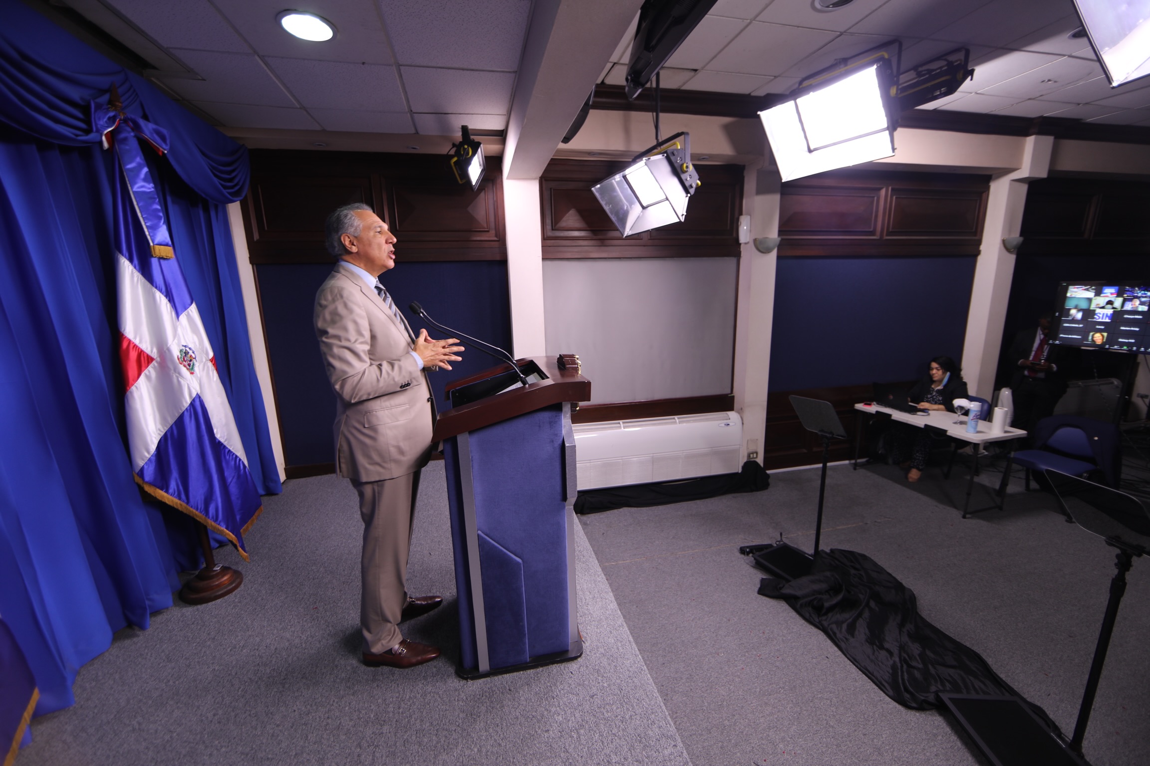 Participación del ministro administrativo de la Presidencia, José Ramón Peralta, durante videoconferencia con los medios de comunicación y los ciudadanos, sobre #CoronavirusRD y planes sociales. Salón Orlando Martínez del Palacio Nacional.