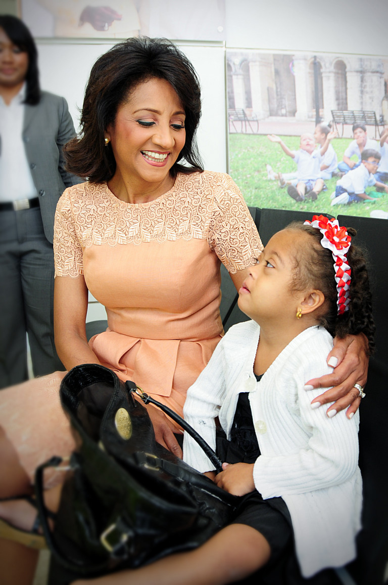 La primera dama Cándida Montilla de Medina comparte con una de las niñas asistida por el Centro de Atención Integral a la Discapacidad (CAID).