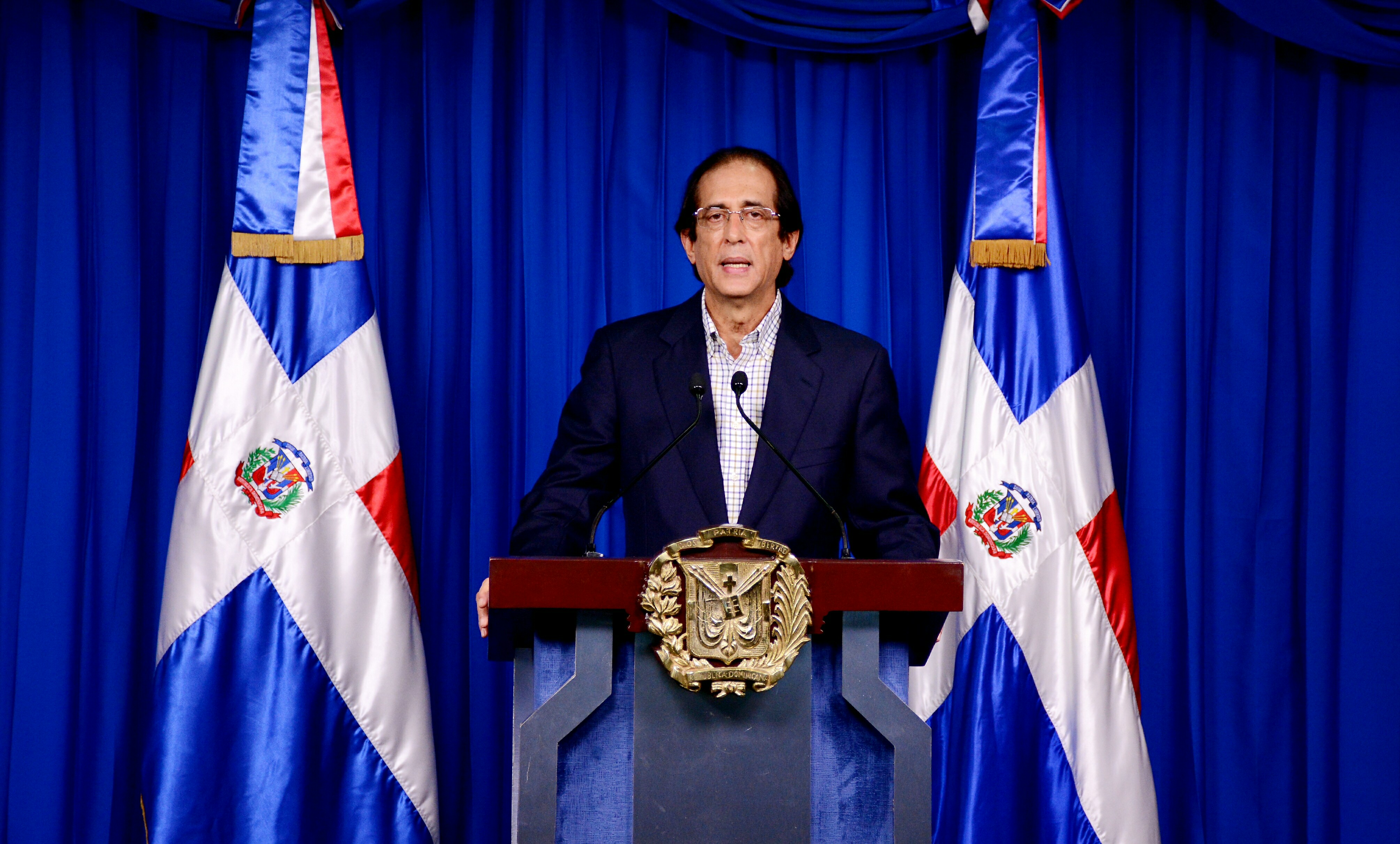 Ministro de la Presidencia, Gustavo Montalvo, en su calidad de coordinador de la Comisión de Alto Nivel para la Prevención y el Control del Coronavirus (COVID-19), durante anuncio de las nuevas medidas dispuestas por el coronavirus en nuestro país.
