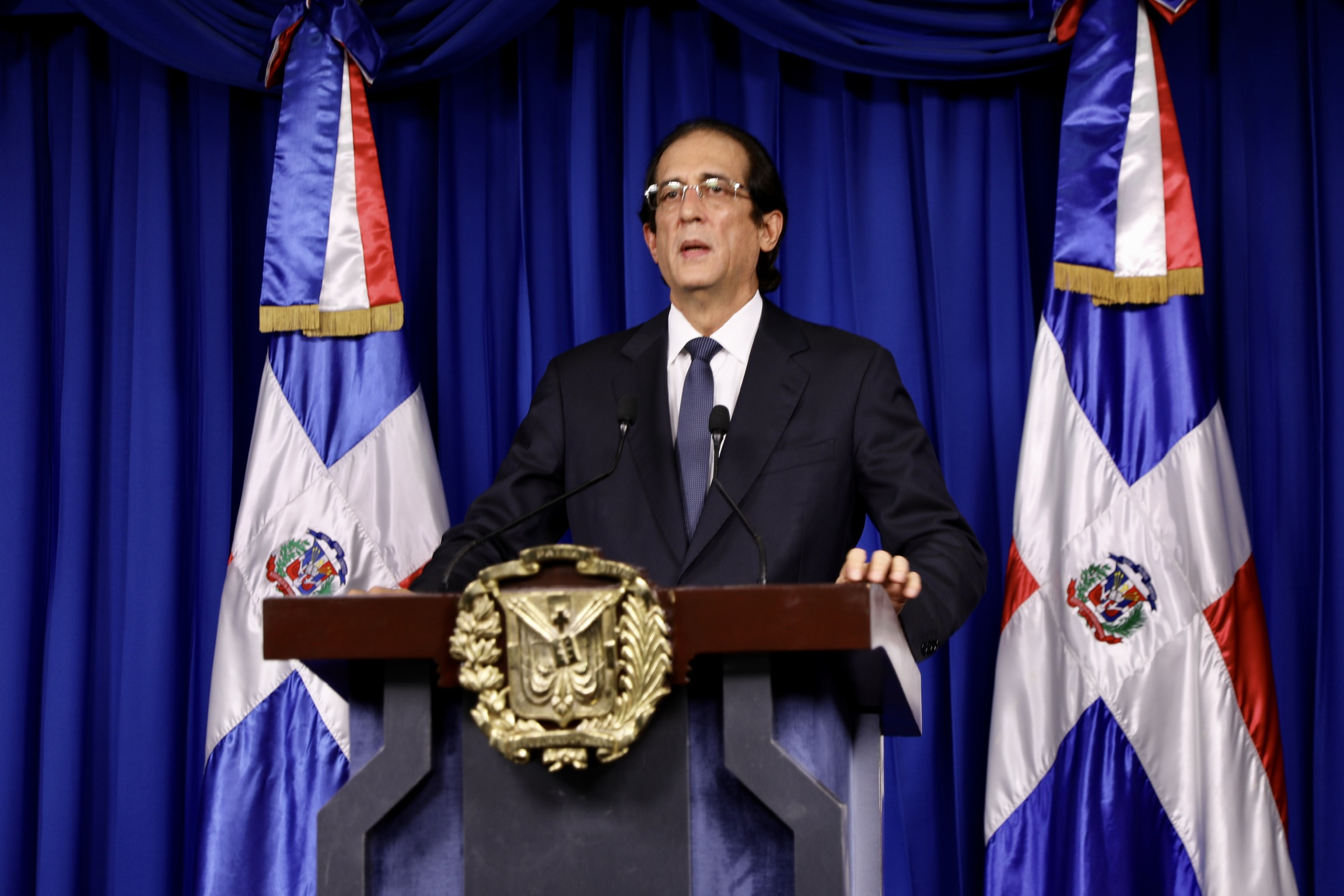 Ministro de la Presidencia, Gustavo Montalvo, en su calidad de coordinador de la Comisión de Alto Nivel para la Prevención y el Control del Coronavirus (COVID-19), al dar a conocer a los medios y ciudadanos las últimas medidas tomadas por el Gobierno ante coronavirus en el país.