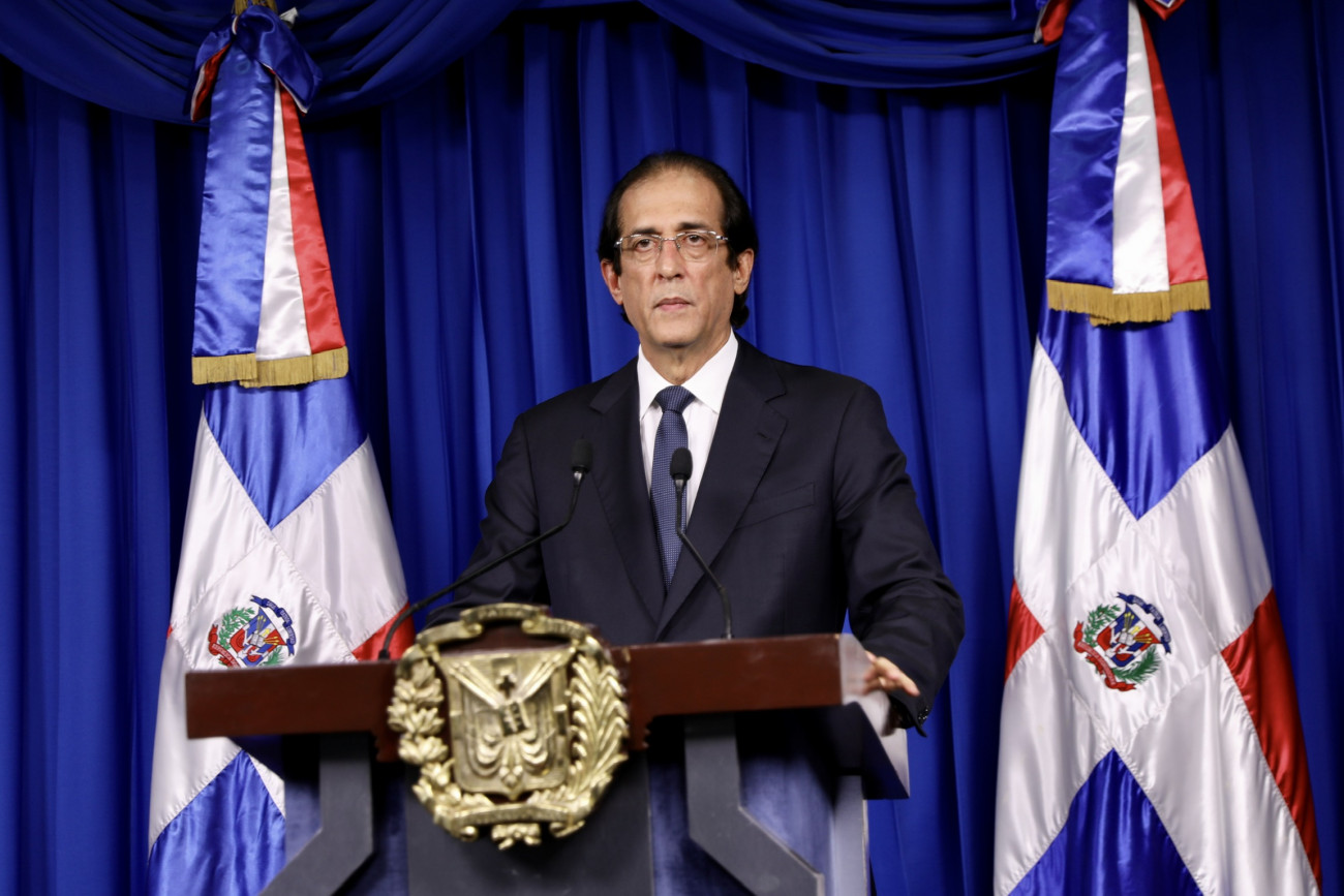 Ministro de la Presidencia, Gustavo Montalvo, en su calidad de coordinador de la Comisión de Alto Nivel para la Prevención y el Control del Coronavirus (COVID-19), al dar a conocer a los medios y ciudadanos las últimas medidas tomadas por el Gobierno ante  coronavirus en el país.