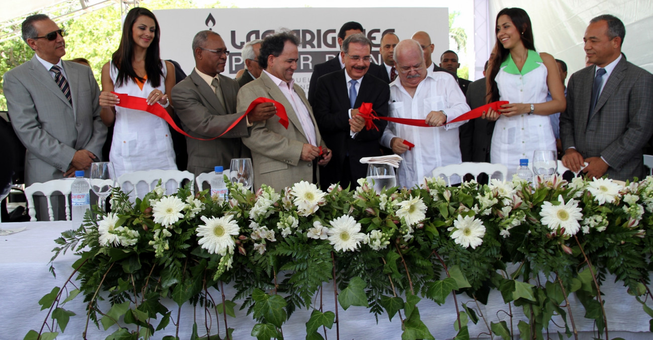 El presidente Danilo Medina al momento de cortar la cinta que dejó inaugurada la primera etapa del proyecto, que aportará 25 megavatios al sistema energético nacional.