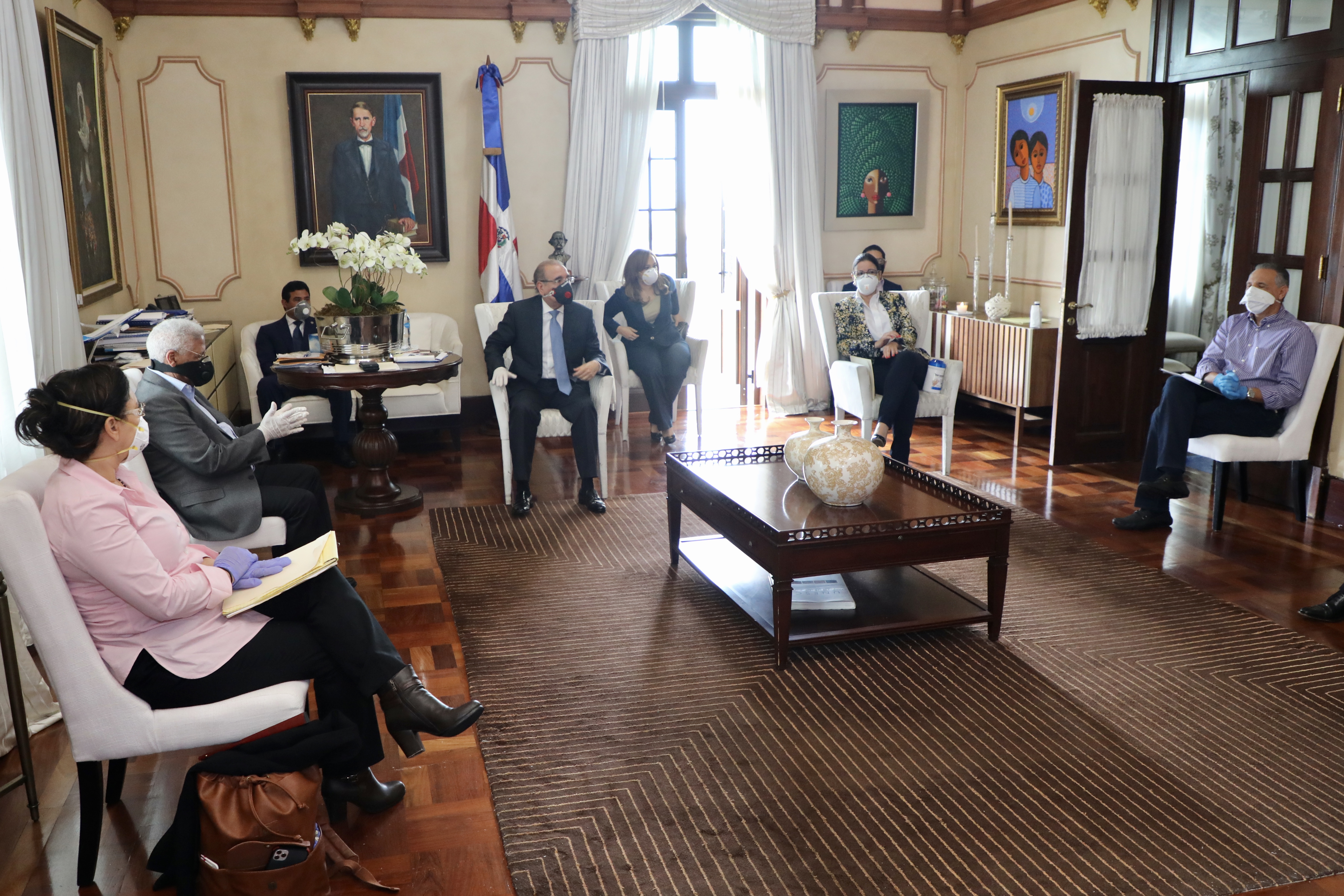 Reunión encabezada por el presidente Danilo Medina con la Comisión de Asuntos Sociales, en la que se pasó balance al plan de trabajo para mitigar el impacto económico y social de la guerra contra el coronavirus (COVID-19), en nuestro país. Salón Privado del Palacio Nacional.