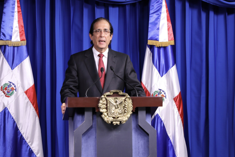 Gustavo Montalvo, ministro de la Presidencia y coordinador de la Comisión de Alto Nivel para la Prevención y el Control del Coronavirus (COVID-19), durante declaraciones por teleconferencia desde el Salón Orlando Martínez, del Palacio Nacional.