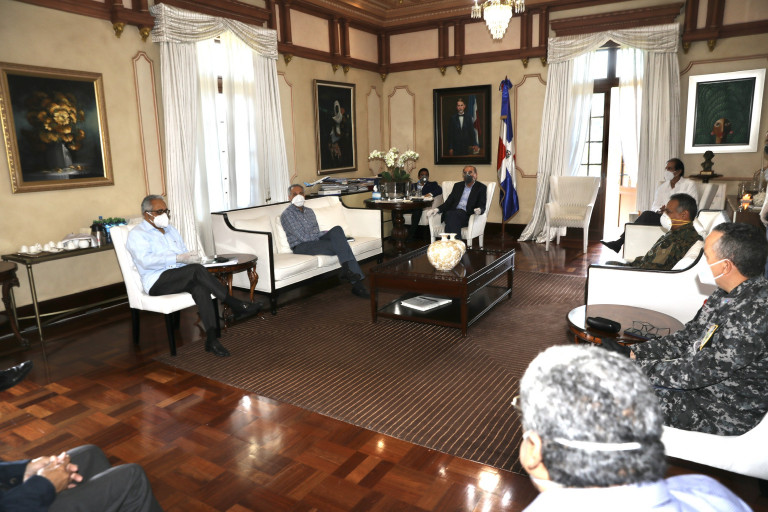 Durante el encuentro, que tuvo lugar en el Salón Privado del Palacio Nacional, Danilo Medina y funcionarios articularon acciones para las instituciones gubernamentales involucradas y reducir el impacto en todos los sectores de nuestra sociedad.