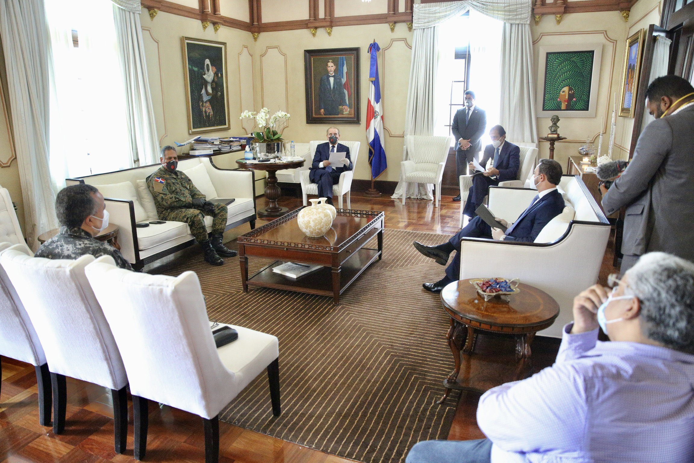 En el encuentro que tuvo lugar en el Salón Privado del Palacio Nacional estuvieron presentes los ministros de la Presidencia, Gustavo Montalvo; y de Defensa, teniente general Rubén Darío Paulino Sem; así como el director de la Policía Nacional, mayor general Ney Aldrin Bautista Almonte.