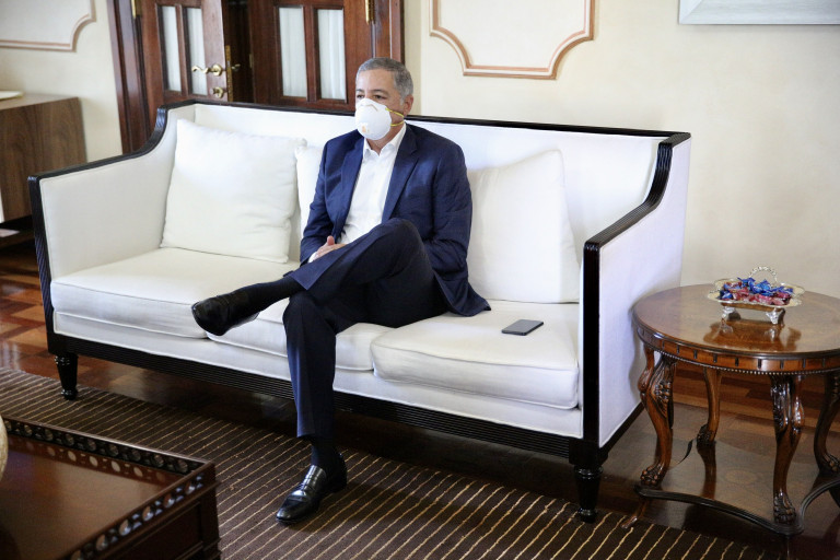 Ministro de Hacienda, Donald Guerrero, durante reunión de hoy en el Salón Privado del Palacio Nacional.