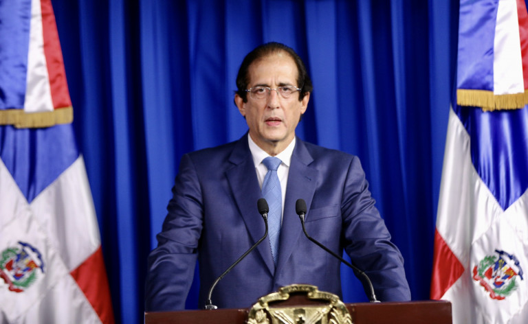 Ministro de la Presidencia, Gustavo Montalvo, en su calidad de coordinador de la Comisión de Alto Nivel para la Prevención y el Control del Coronavirus, durante videoconferencia para anunciar las nuevas medidas desde el Salón Orlando Martínez del Palacio Nacional.