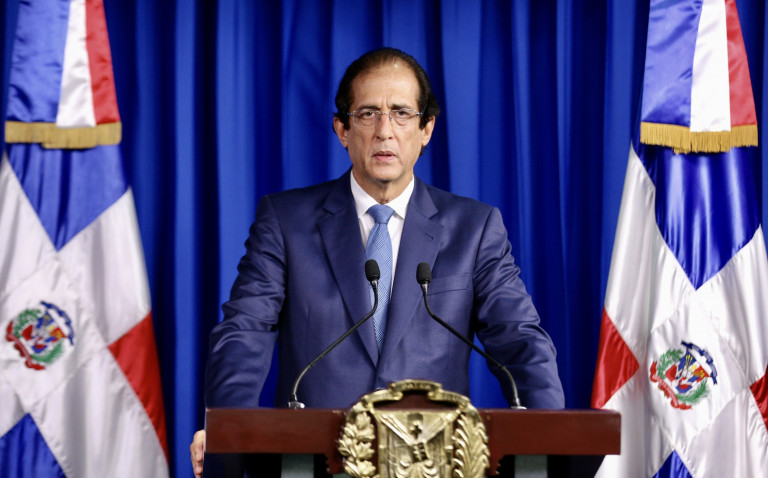 Ministro de la Presidencia, Gustavo Montalvo, en su calidad de coordinador de la Comisión de Alto Nivel para la Prevención y el Control del Coronavirus, durante videoconferencia para anunciar las nuevas medidas desde el Salón Orlando Martínez del Palacio Nacional.