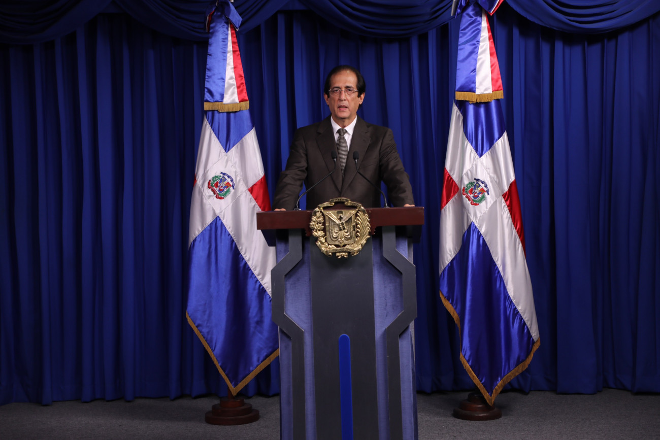 Ministro de la Presidencia, Gustavo Montalvo, en su calidad de coordinador de la Comisión de Alto Nivel para la Prevención y el Control del Coronavirus (COVID-19), durante videoconferencia para anunciar nuevas medidas dispuestas por el Gobierno ante actual pandemia.