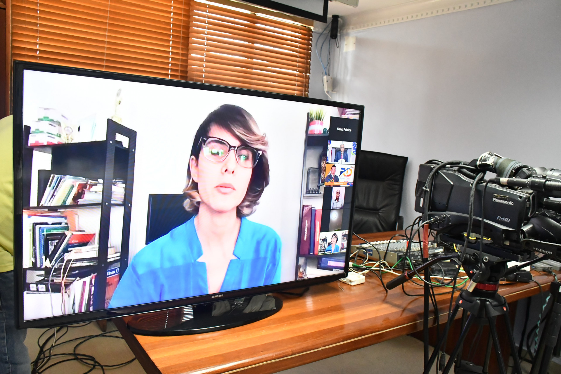 Periodistas participantes en videoconferencia ofrecida por el ministro de Salud Pública, Rafael Sánchez Cárdenas, quien respondió preguntas sobre actual situación de coronavirus (COVID-19), en nuestro país.