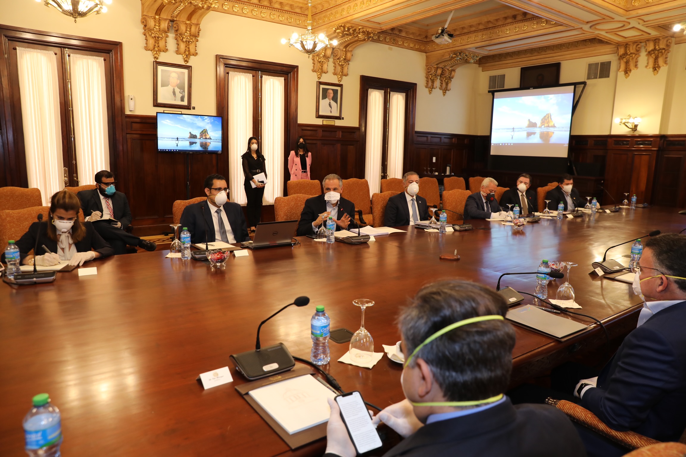 El ministro Administrativo de la Presidencia, José Ramón Peralta, se reunió esta tarde con líderes del sector empresarial del país para tratar la apertura de las actividades económicas post coronavirus.