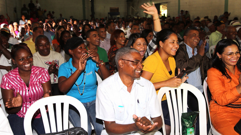 Durante el encuentro,el presidente Danilo Medina anunció el apoyo del gobierno para la rehabilitación de los cafetales y el inicio de proyectos familiares de producción de chinolas del municipio de Los Cacaos y para criadores de conejos de San Cristóbal.