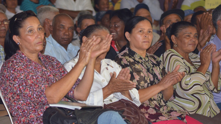 Damas participantes durante el encuentro del presidente Danilo Medina con productores de conejos y de café, de la comunidad Los Cacaos, en San Cristóbal. Foto: Ángel Álvarez Rodríguez/Presidencia República Dominicana Nota de prensa: presidencia.gob.do/noticias/productores-de-chinola-y-cafe... Video YouTube: www.youtube.com/watch?v=evMlmfDzIQI