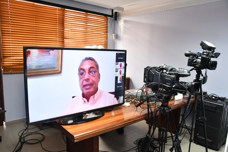 Periodistas participantes en videoconferencia ofrecida por el ministro de Salud Pública, Rafael Sánchez Cárdenas, quien respondió preguntas sobre actual situación de coronavirus (COVID-19), en nuestro país.
