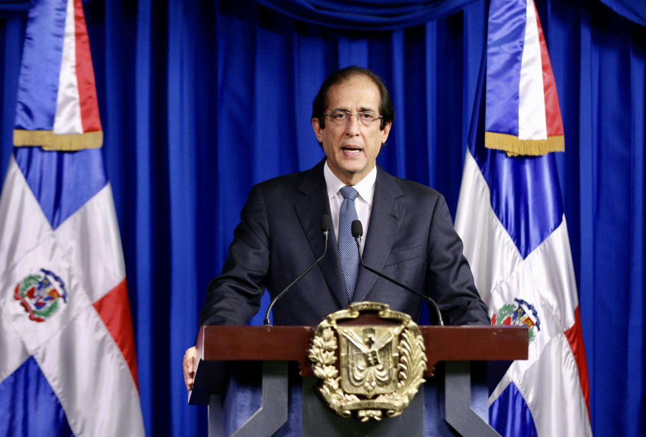 Ministro de la Presidencia, Gustavo Montalvo, en su calidad de coordinador de la Comisión de Alto Nivel para la Prevención y el Control del Coronavirus (COVID-19), durante videoconferencia transmitida desde el Salón Orlando Martínez del Palacio Nacional.