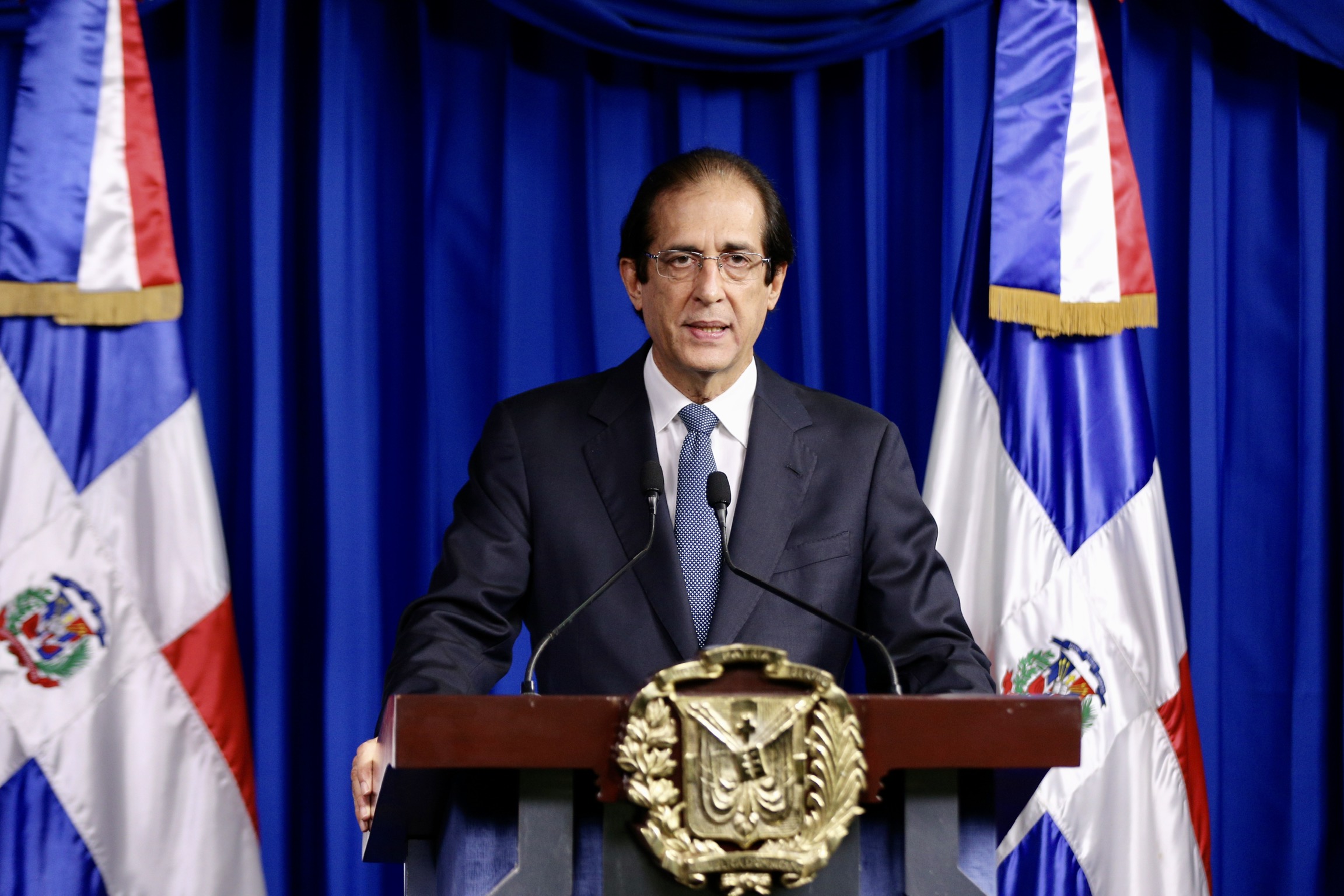 Ministro de la Presidencia, Gustavo Montalvo, en su calidad de coordinador de la Comisión de Alto Nivel para la Prevención y el Control del Coronavirus (COVID-19), durante videoconferencia transmitida desde el Salón Orlando Martínez del Palacio Nacional.