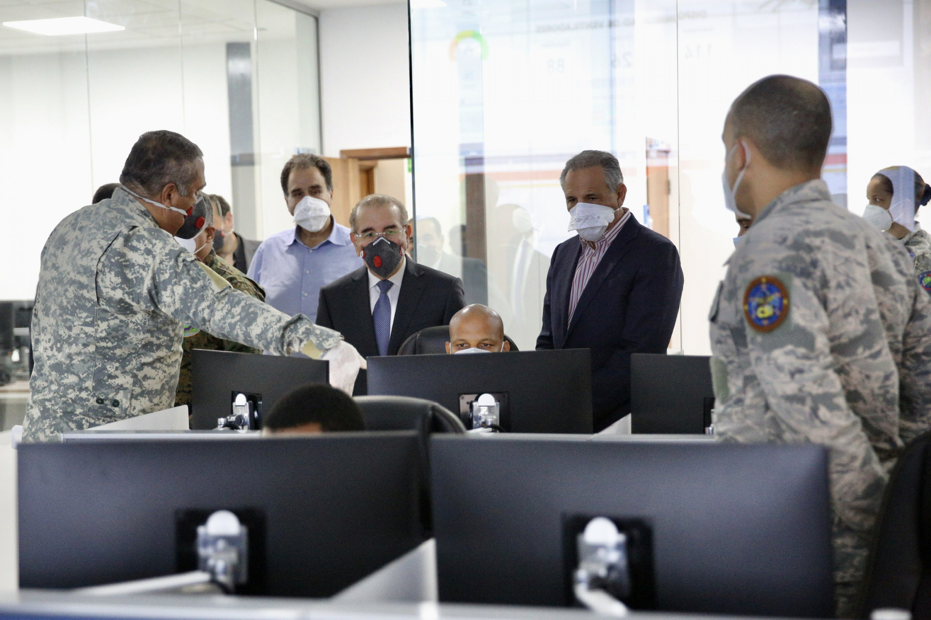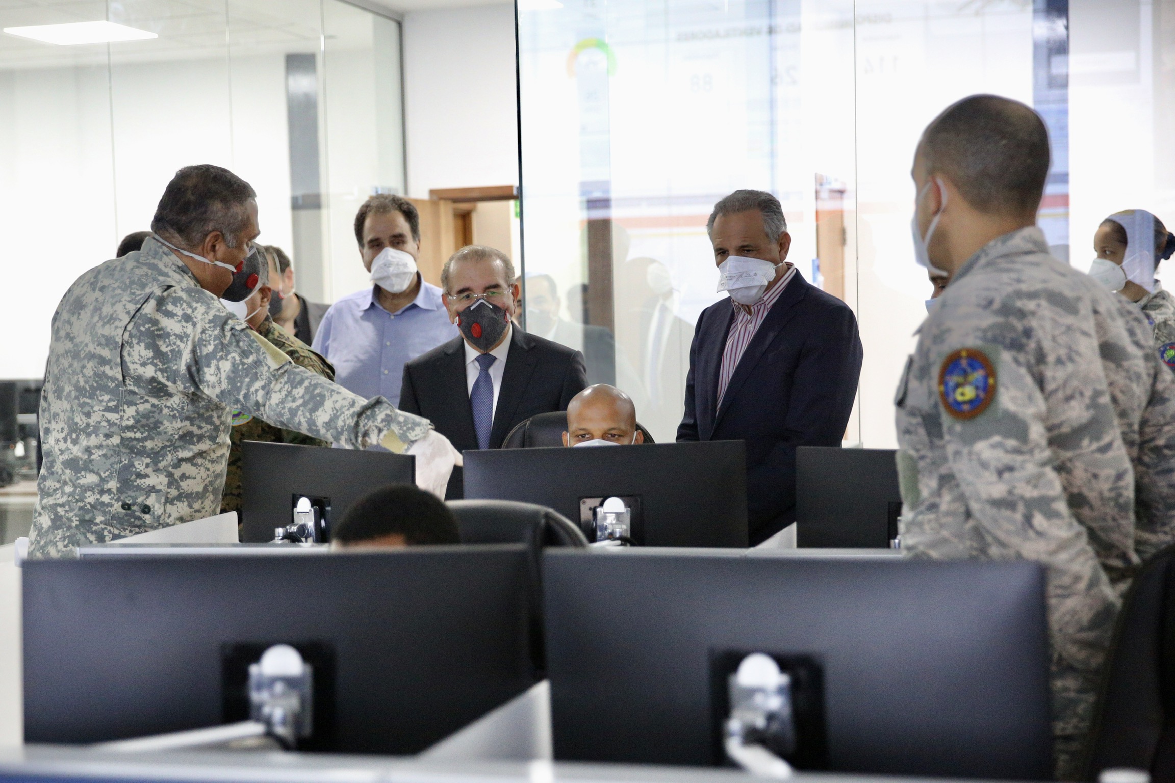 El presidente Danilo Medina visitó el Centro de Comando, Control, Comunicaciones, Computadoras, Ciberseguridad e Inteligencia del Ministerio de Defensa (C5i), modernas instalaciones que se suman al batallón para combatir el coronavirus (COVID-19).