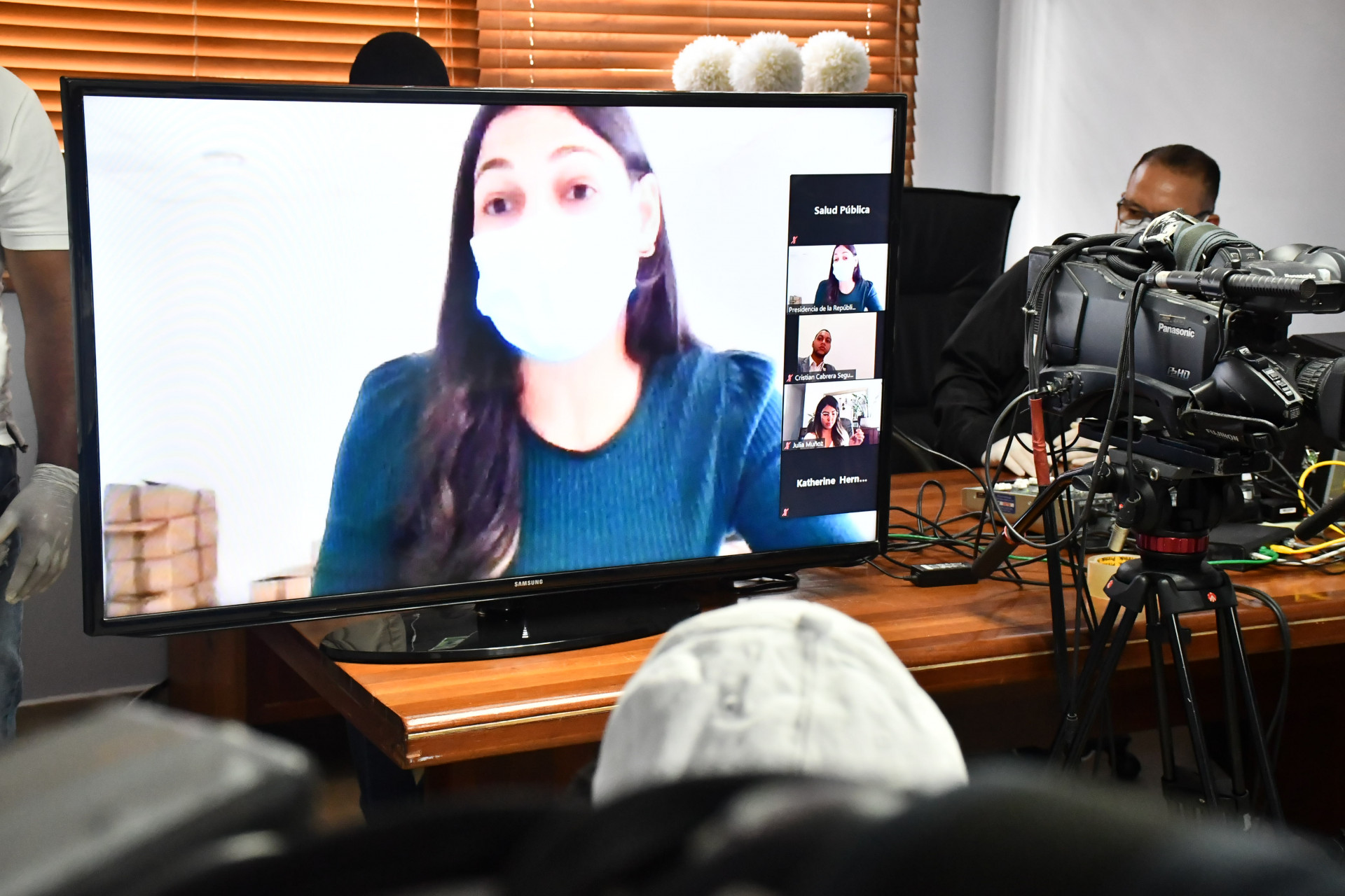 Periodistas participantes en videoconferencia ofrecida por el ministro de Salud Pública, Rafael Sánchez Cárdenas, quien respondió preguntas sobre actual situación de coronavirus (COVID-19), en nuestro país.