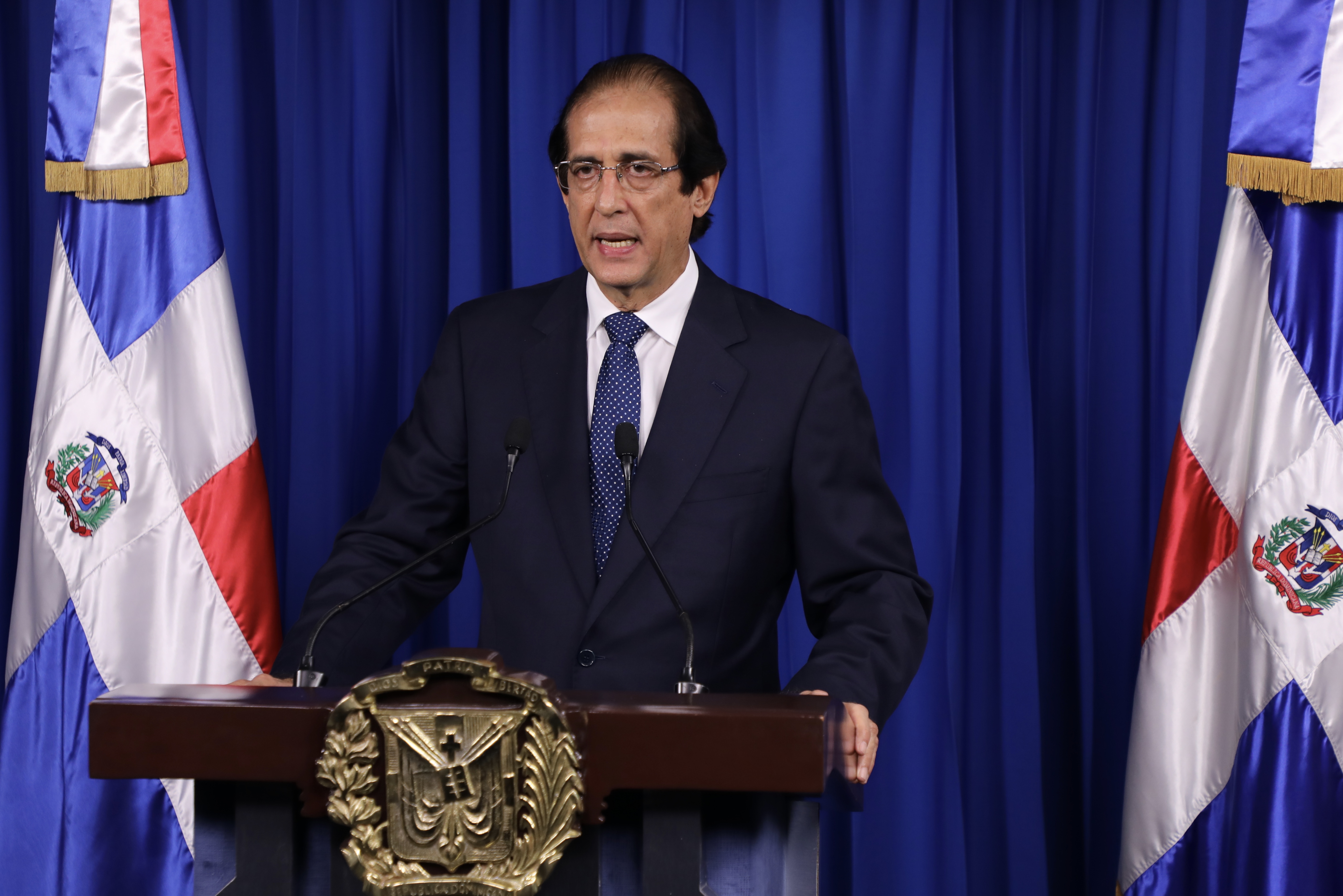 Ministro de la Presidencia, Gustavo Montalvo, en su calidad de coordinador de la Comisión de Alto Nivel para la Prevención y el Control del Coronavirus (COVID-19), durante videoconferencia transmitida desde el Salón Orlando Martínez del Palacio Nacional.