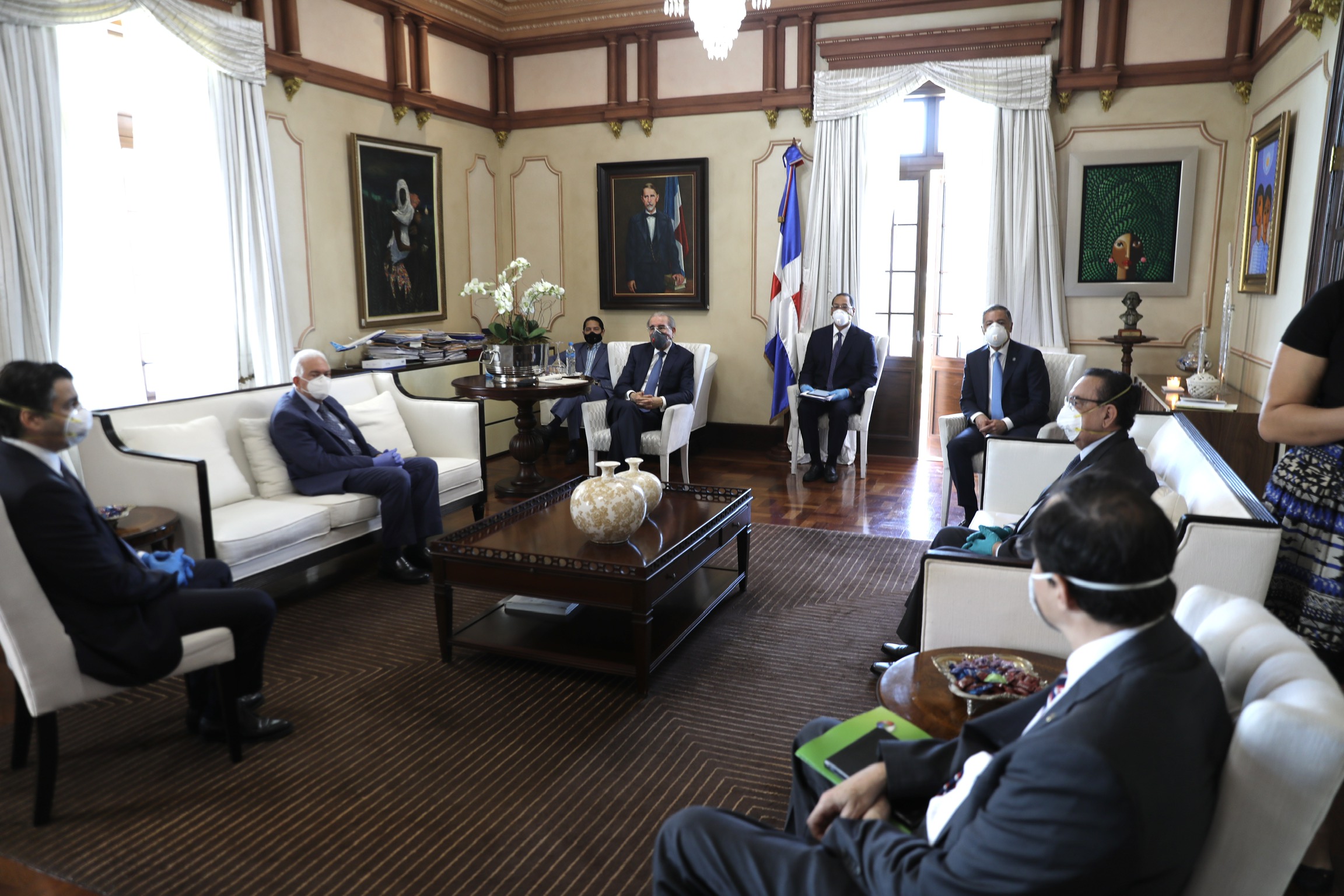 El jefe de Estado se hizo acompañar del gobernador del Banco Central, Héctor Valdez Albizu; del ministro de Hacienda, Donald Guerrero; y del Superintendente de Bancos, Luis Armando Asunción Álvarez.