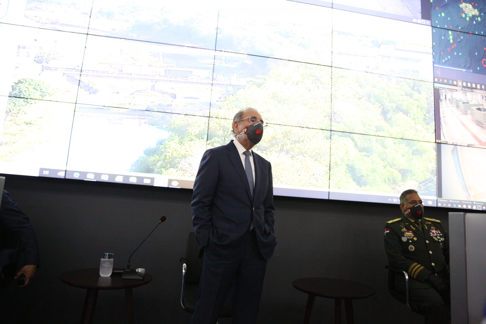 Presidente Danilo Medina al encabezar la puesta en marcha del Centro de Comando, Control, Comunicaciones, Computadoras, Ciberseguridad e Inteligencia del Ministerio de Defensa (C5i), que se suma a la lucha contra el coronavirus (COVID-19), en nuestro país.