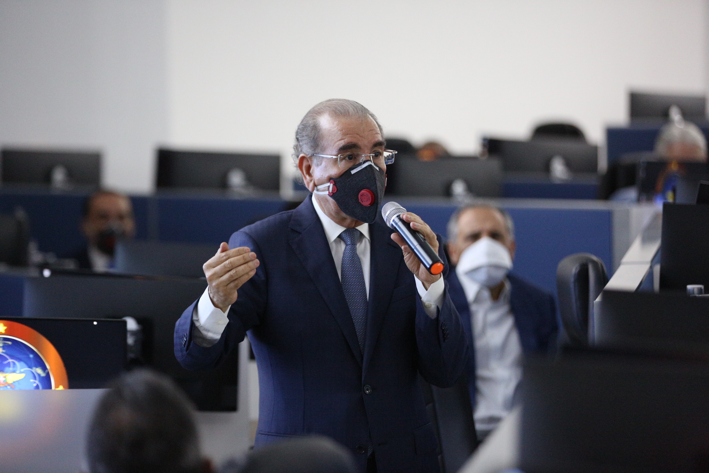 Presidente Danilo Medina al encabezar la puesta en marcha del Centro de Comando, Control, Comunicaciones, Computadoras, Ciberseguridad e Inteligencia del Ministerio de Defensa (C5i), que se suma a la lucha contra el coronavirus (COVID-19), en nuestro país.
