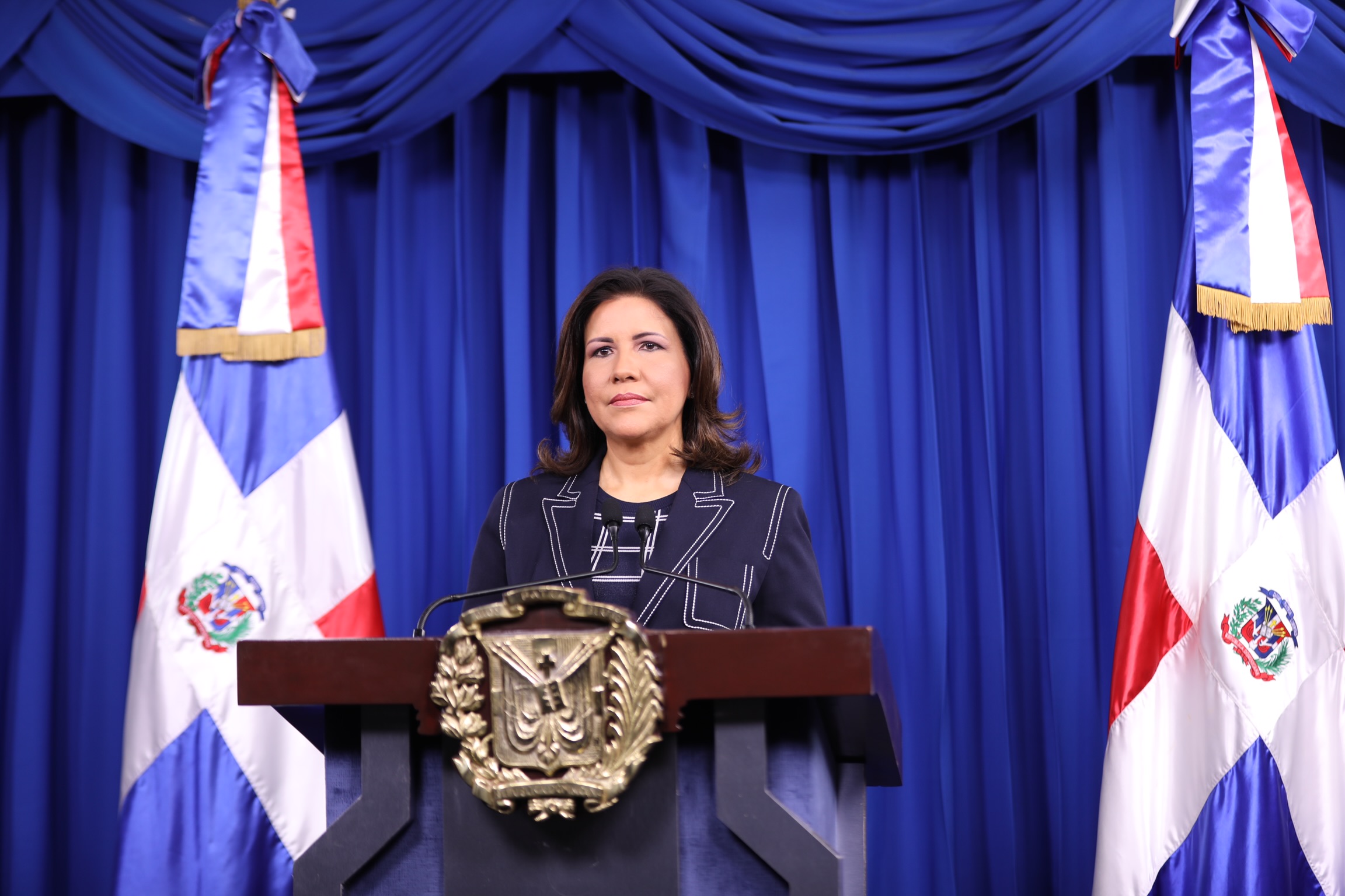 Dra. Margarita Cedeño, vicepresidenta de la República y coordinadora del Gabinete de Políticas Sociales (GCPS), durante su discurso para anunciar nuevas medidas dispuestas por el Gobierno ante actual pandemia. Salón Orlando Martínez en el Palacio Nacional.