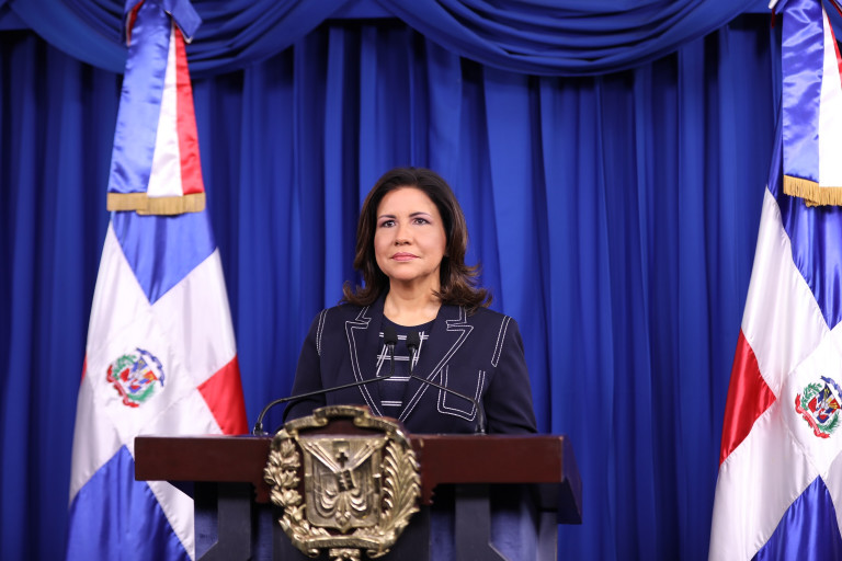 Dra. Margarita Cedeño, vicepresidenta de la República y coordinadora del Gabinete de Políticas Sociales (GCPS), durante su discurso para anunciar nuevas medidas dispuestas por el Gobierno ante actual pandemia. Salón Orlando Martínez en el Palacio Nacional.