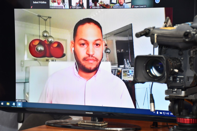 Periodistas participantes en videoconferencia ofrecida por el ministro de Salud Pública, Rafael Sánchez Cárdenas, quien respondió preguntas sobre actual situación de coronavirus (COVID-19), en nuestro país.