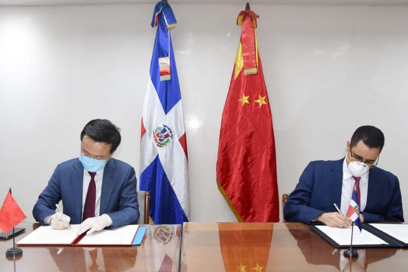 El ministro de Economía, Planificación y Desarrollo, Juan Ariel Jiménez, y el embajador extraordinario y plenipotenciario de la República Popular China en el país, Zhang Run, firmaron el acta de entrega de la donación en representación de ambos gobiernos.