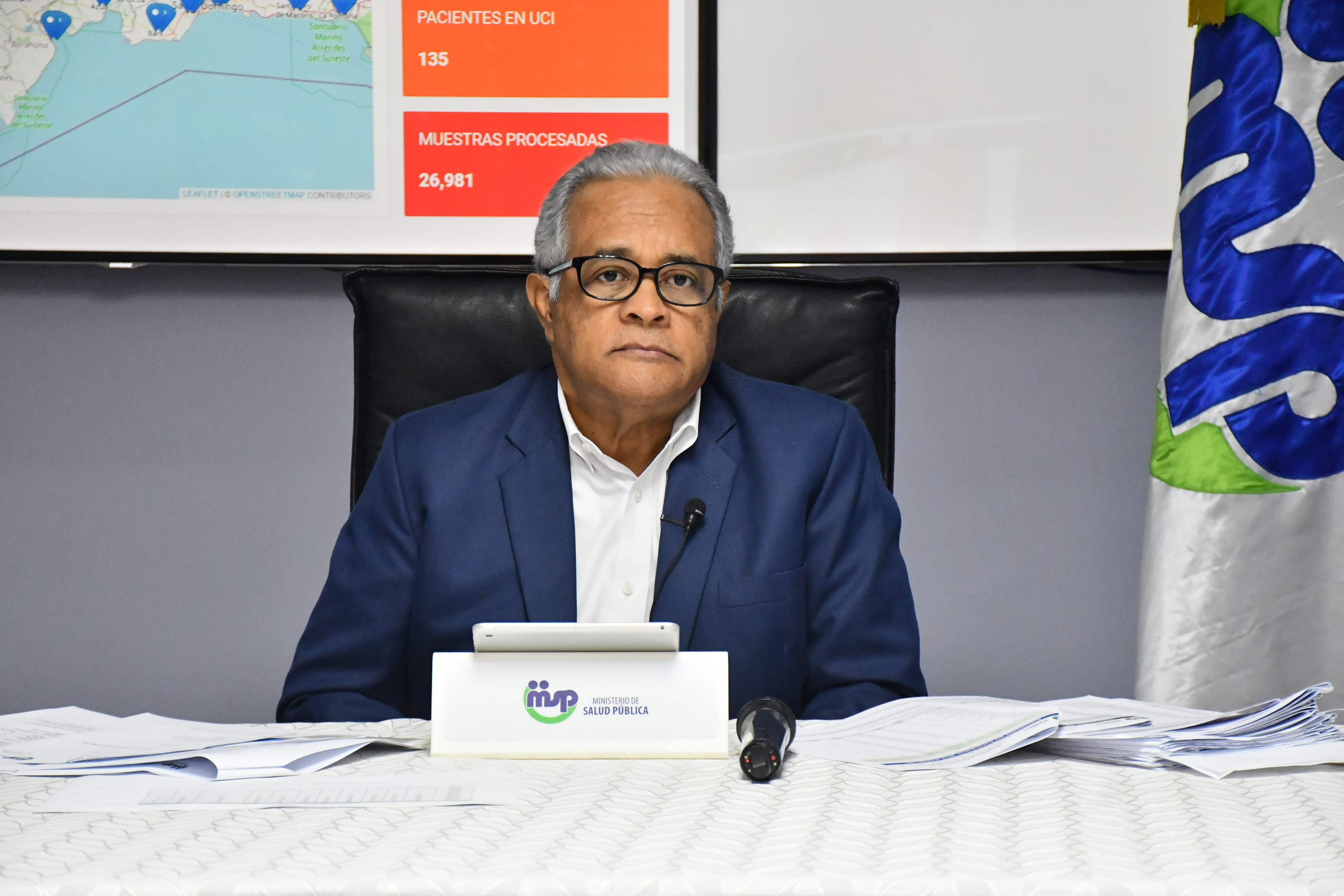 Ministro de Salud Pública, Rafael Sánchez Cárdenas, al ofrecer detalles del boletín especial número 42 de la Dirección General de Epidemiología, sobre el comportamiento del coronavirus (COVID-19) en el país.