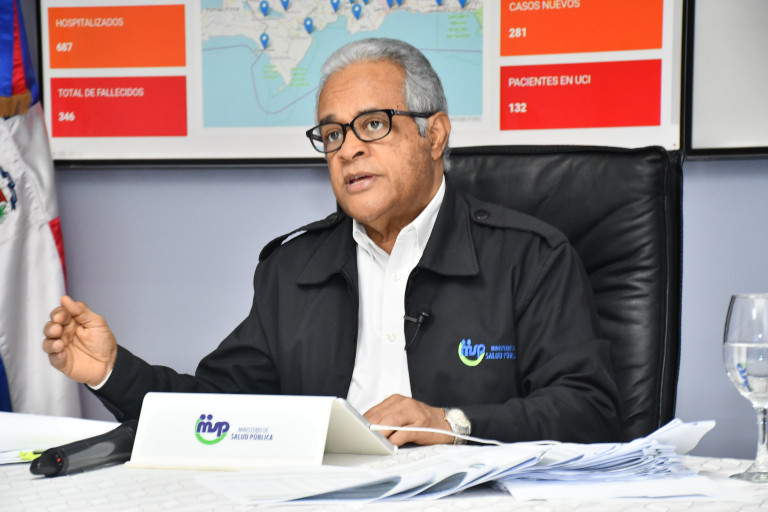 Ministro de Salud Pública, Rafael Sánchez Cárdenas, al ofrecer detalles del boletín especial número 46 de la Dirección General de Epidemiología, sobre el comportamiento del coronavirus (COVID-19) en el país.