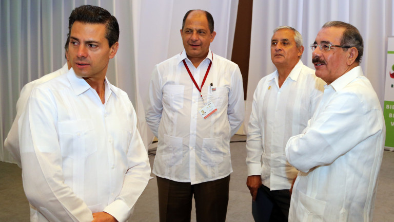Participación del presidente de la República Dominicana, Danilo Medina Sánchez junto al presidente guatemalteco, Otto Pérez Molina y el presidente de mexicano, Enrique Peña Nieto, durante la XIV Cumbre del Mecanismo de Tuxtla, que se desarrolla en el marco de la VI Cumbre de la AEC, Mérida-2014.