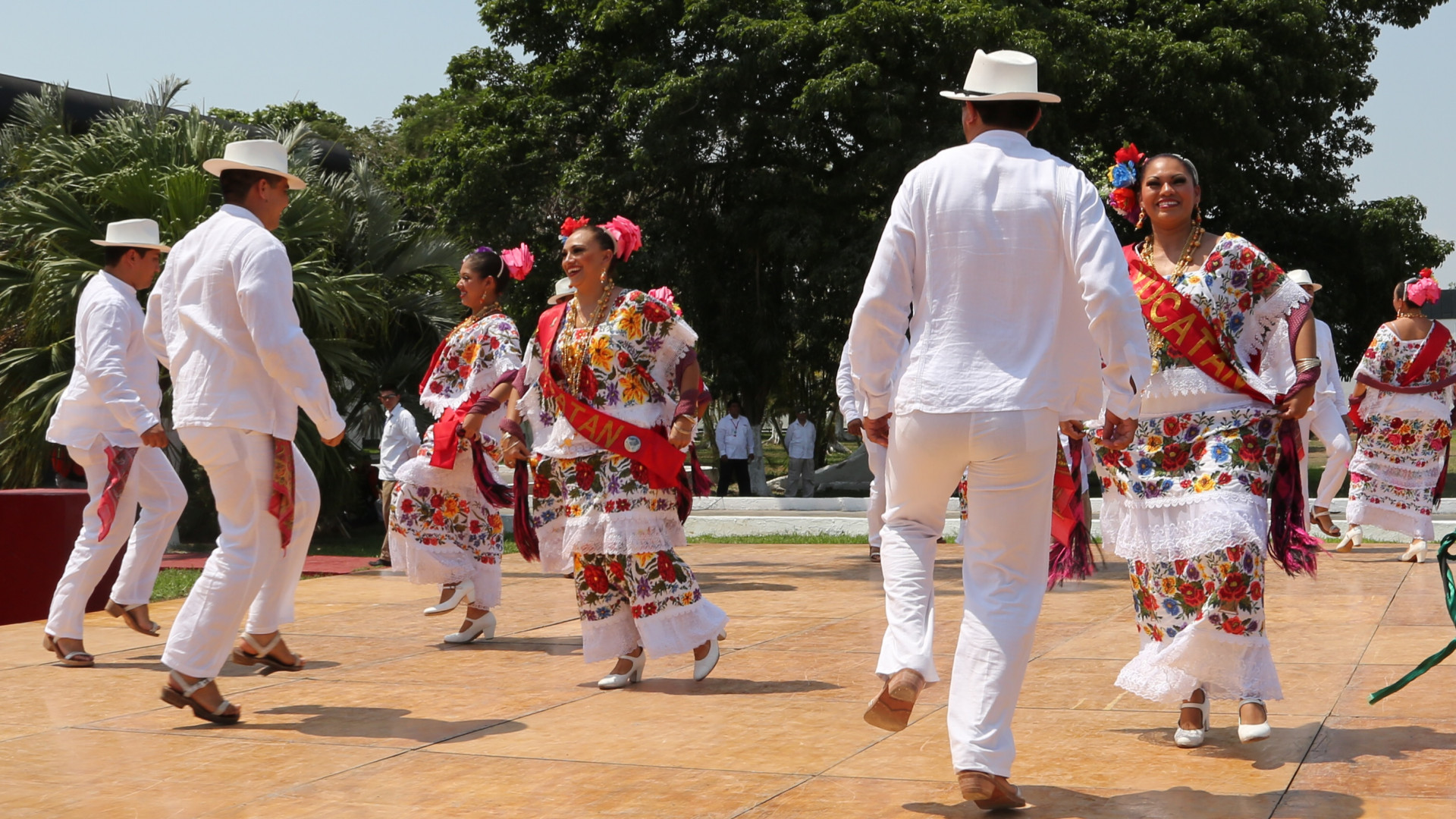 Conjunto de música folklórica que se unió al recibimiento de los mandatarios participantes, a dicha cumbre con la interpretación de una jarana, baile típico de Yucatán.