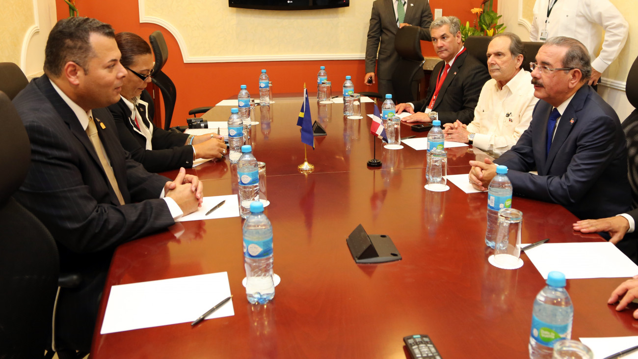 Danilo Medina, presidente de la República Dominica, e Ivar Asjes, primer ministro de Curazao, sostienen encuentro bilateral.