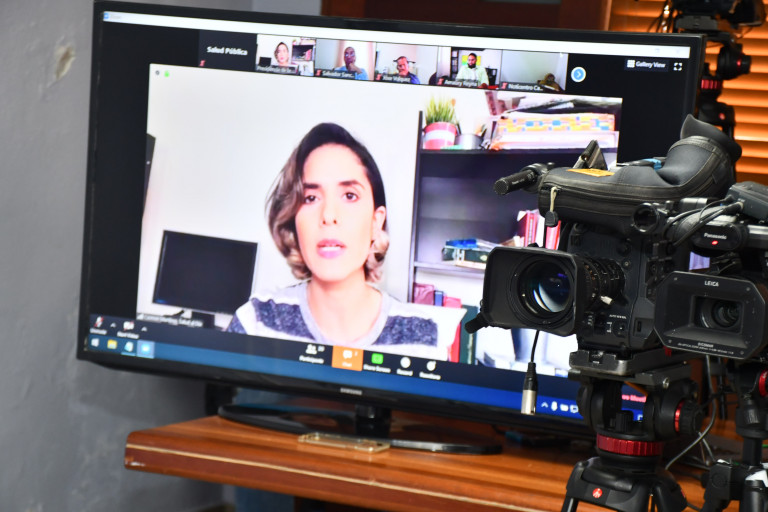 Periodistas participantes en la webconferencia ofrecida por el ministro de Salud Pública, Rafael Sánchez Cárdenas, quien respondió preguntas sobre actual situación de coronavirus (COVID-19), en nuestro país.