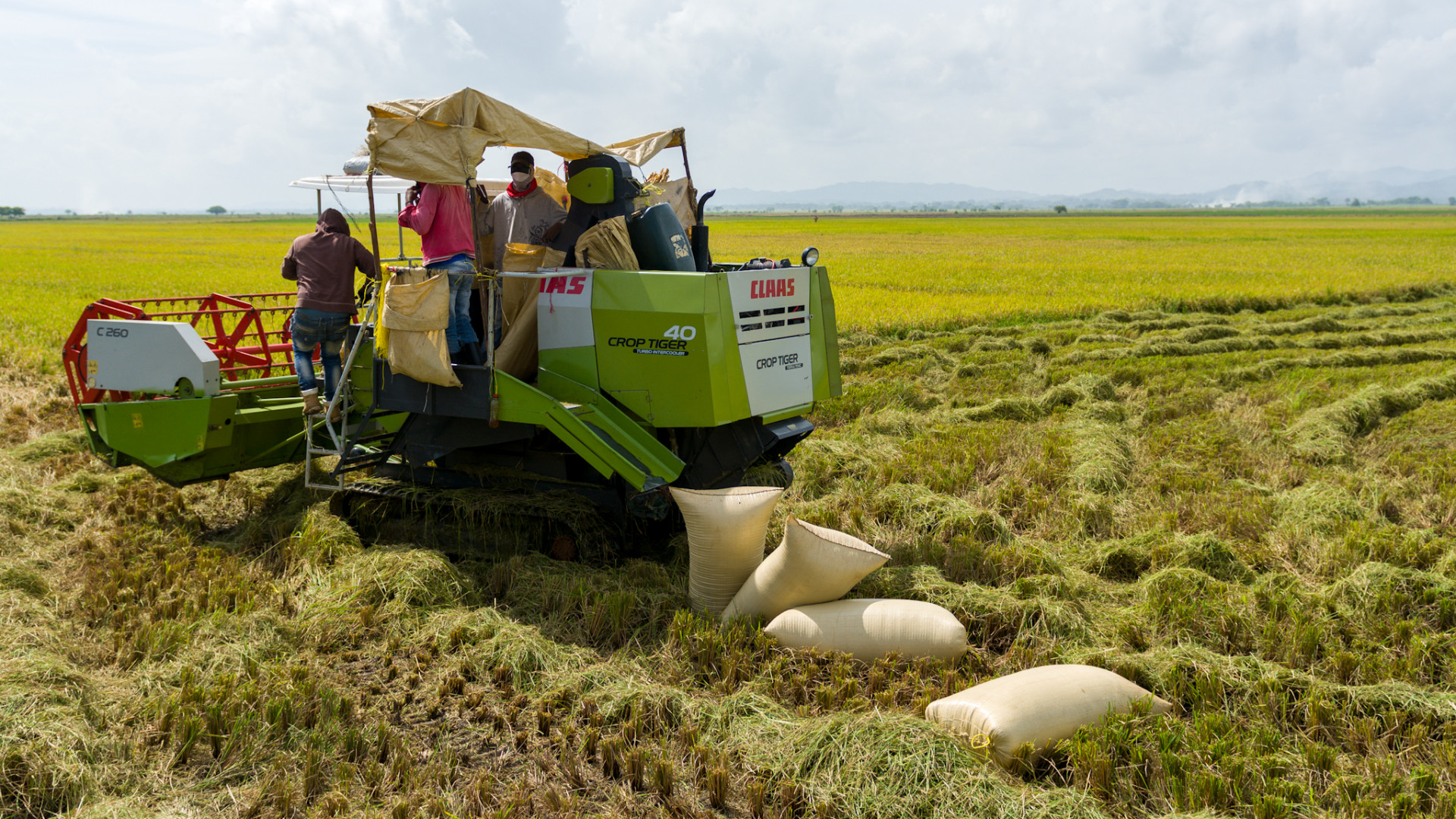 Están cosechando mucho arroz.